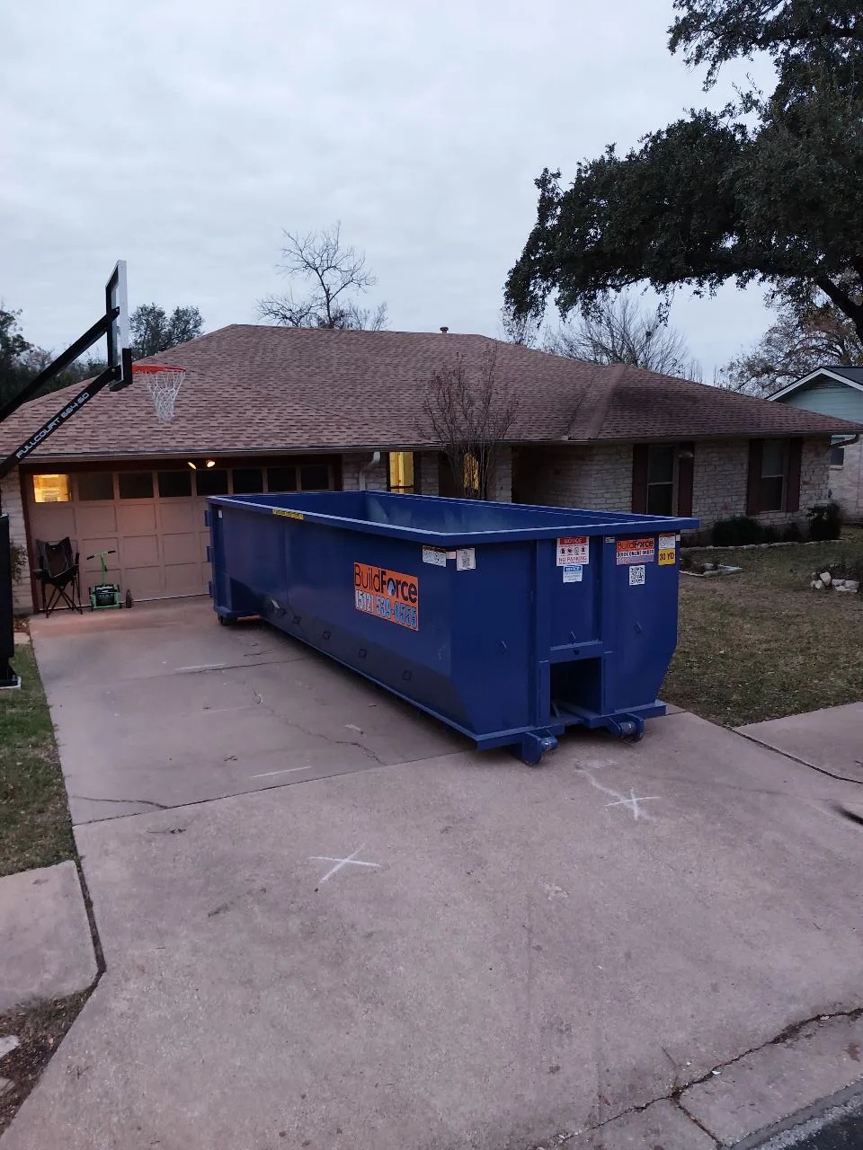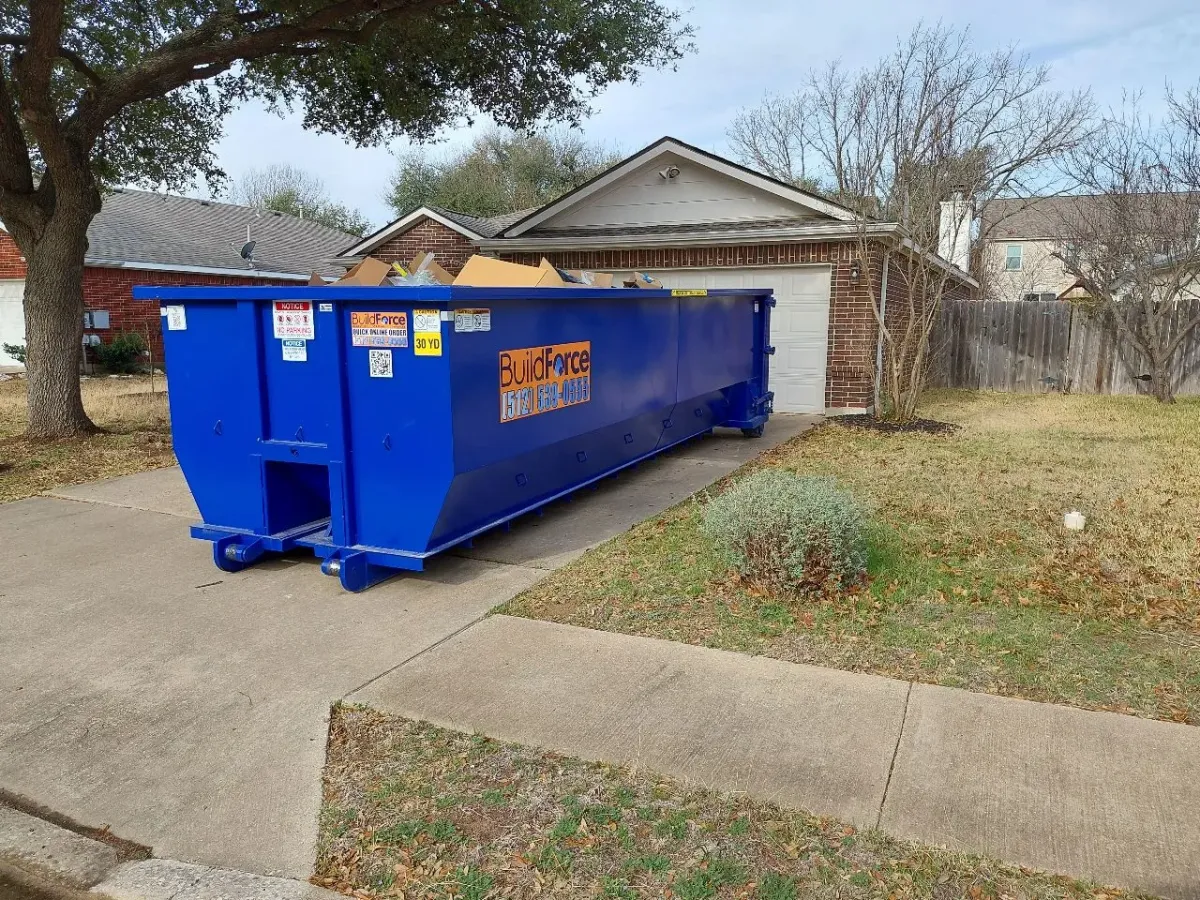 Our 30-yard dumpster from BuildForce Dumpster Rentals - Austin is perfect for major home projects, like full-home cleanouts, basement renovations, or large yard projects. It offers plenty of space while still fitting in residential areas safely.