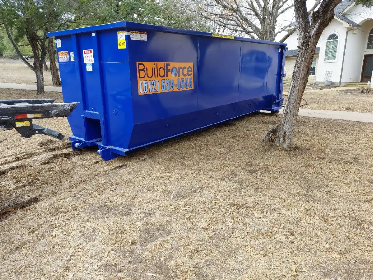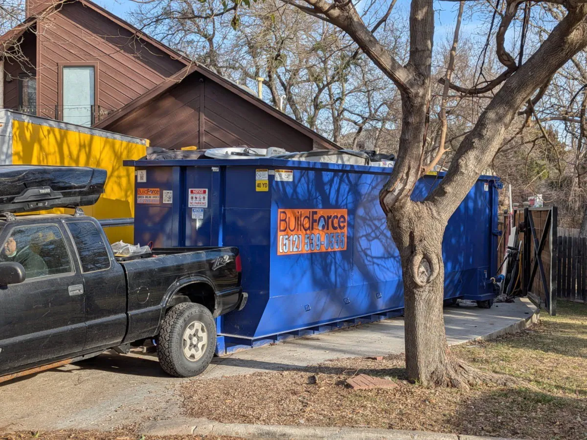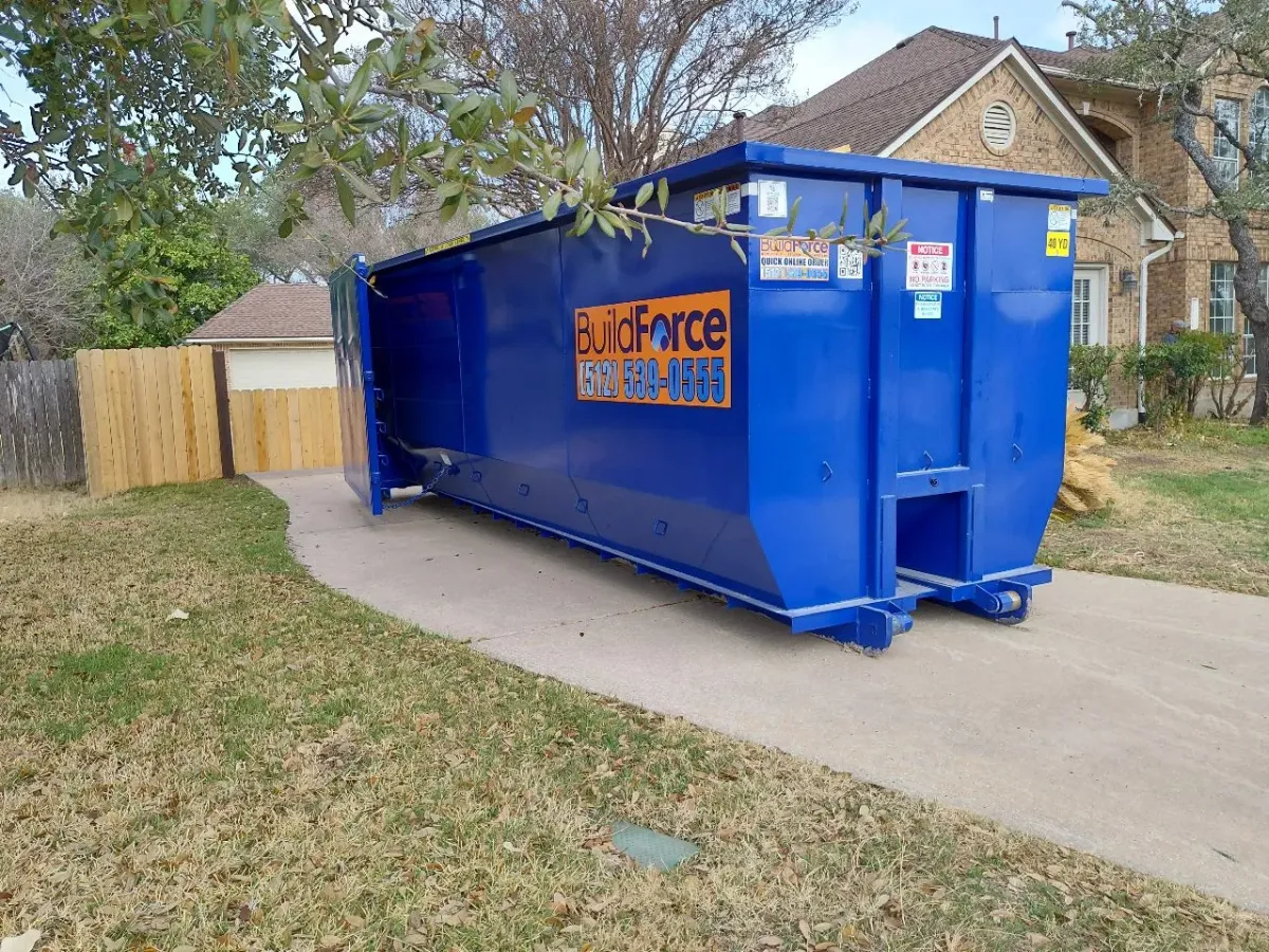 Our 40-yard dumpster from BuildForce Dumpster Rentals - Austin is perfect for homeowners tackling large-scale projects, like full-home remodels, basement cleanouts, or estate cleanups. With space for up to 16 pickup truckloads of debris, it makes even the biggest home projects manageable.